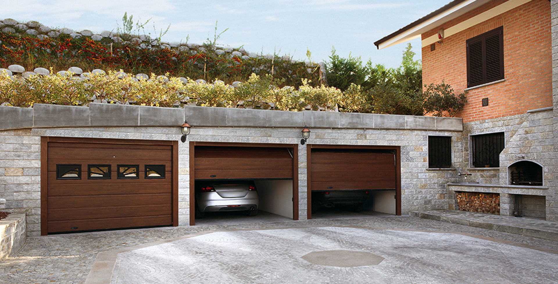 I portoni sezionali si aprono verticalmente verso l’alto, guadagnando così spazio sia dentro che davanti al garage e lasciando libero il passaggio.